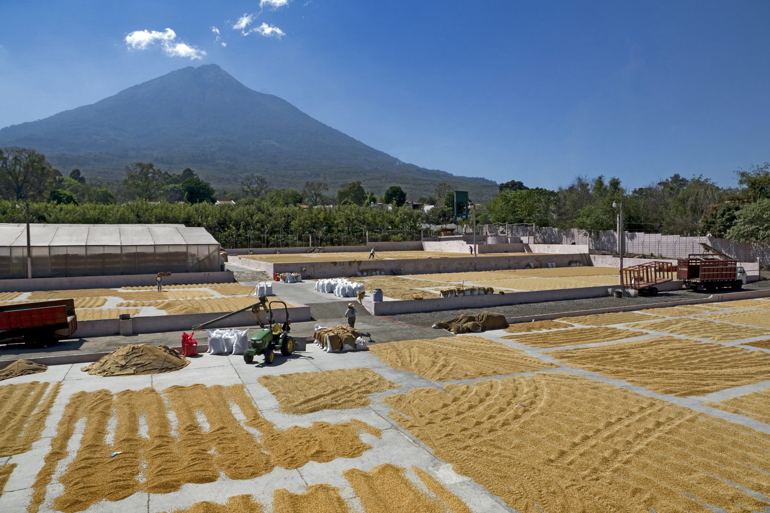 Das Antigua-Tal ist eine der berühmtesten Kaffeeanbauregionen Guatemalas. Es liegt im zentralen Hochland des Landes, umgeben von drei Vulkanen – Agua, Fuego und Acatenango -, die der Region ihren Namen „Los Volcanes“ geben.